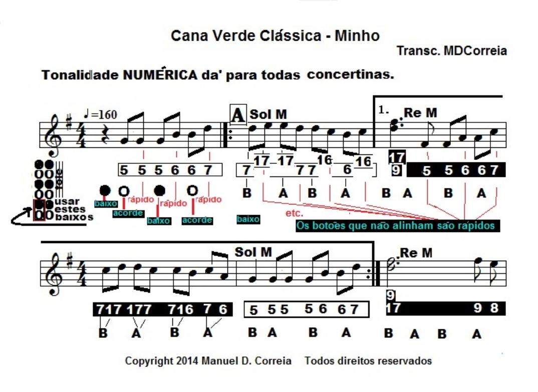 Abaixo 1a parte da Cana Verde Classica em numerica para a concertina - Vai sendo editada mais para melhor se ler!