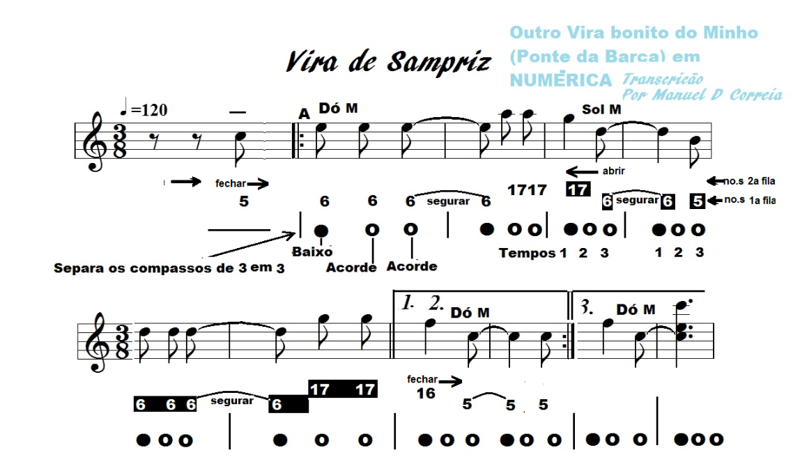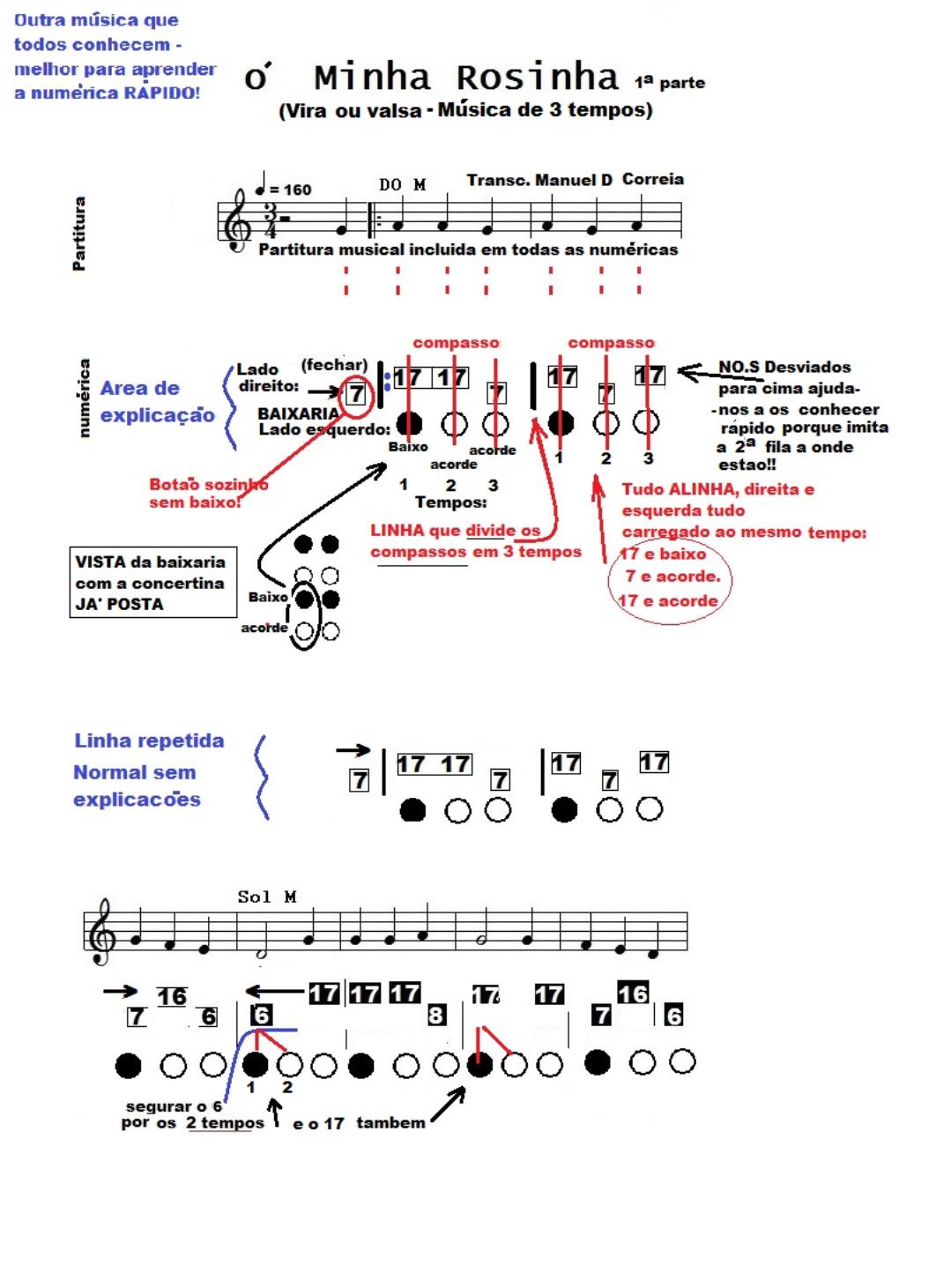 NUMERICA e (OU) NOTAS na pauta para Acordeao teclas, Cromatico e Harmonica de toda a musica popular Portuguesa - tambem c0m dicas de aprendizagem.